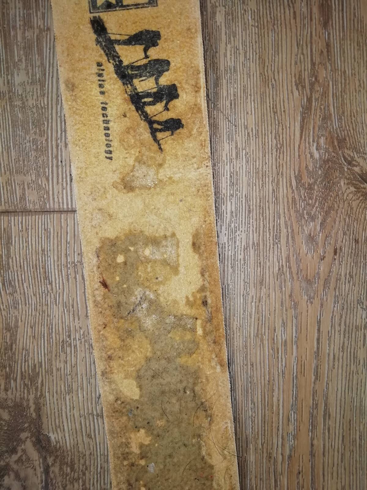 Hast du dein Fell beurteilt und vom Kleber bzw. Schmutz befreit, dann platziere jetzt das Steigfell sowie das Nachbeschichtungstape auf einem flachen Untergrund und lege zur Vorsicht etwas darunter (z.B. eine Plane oder Zeitungpapier).