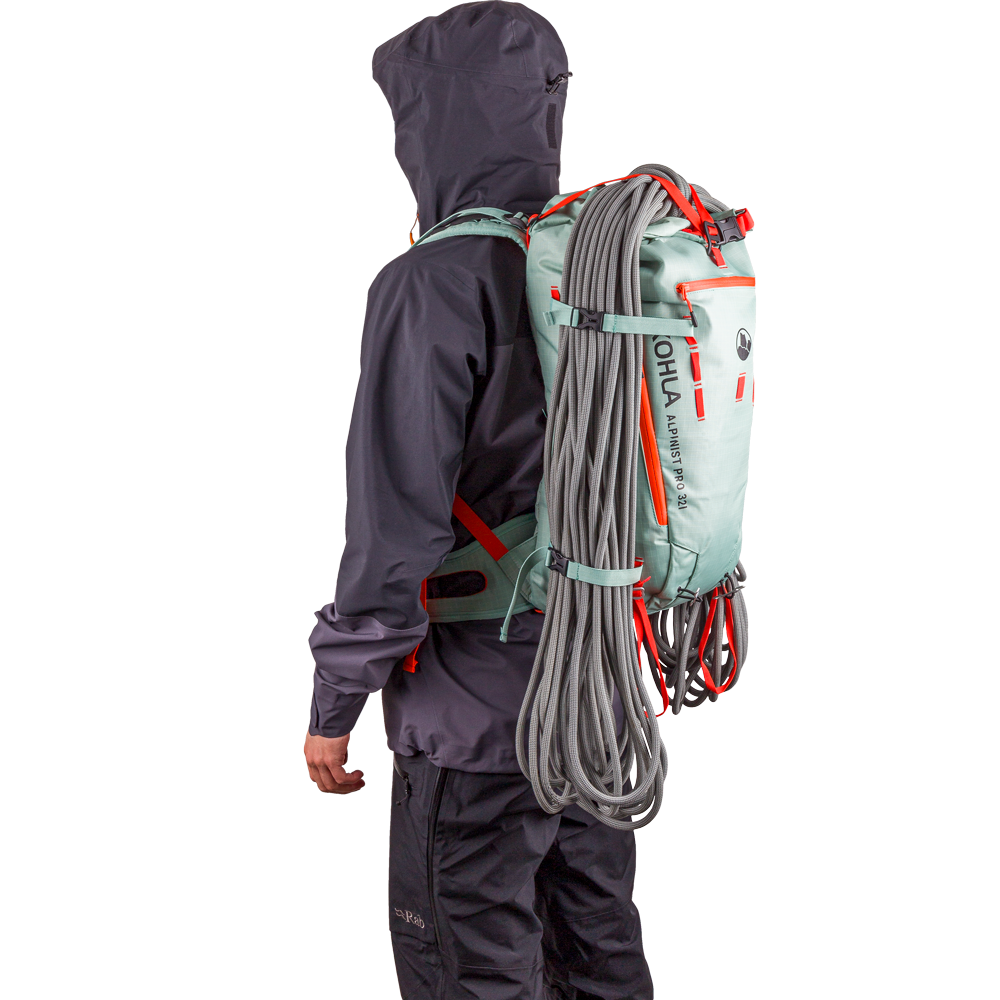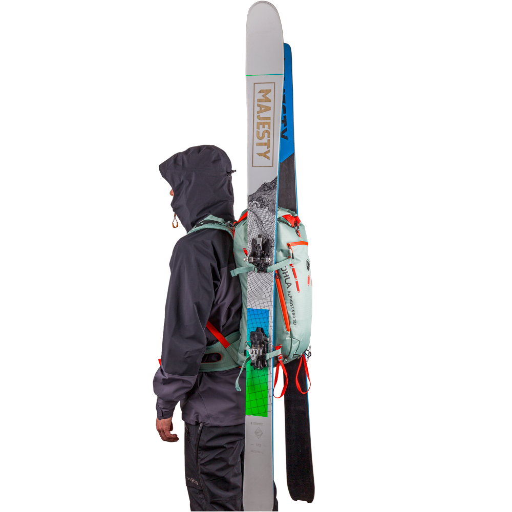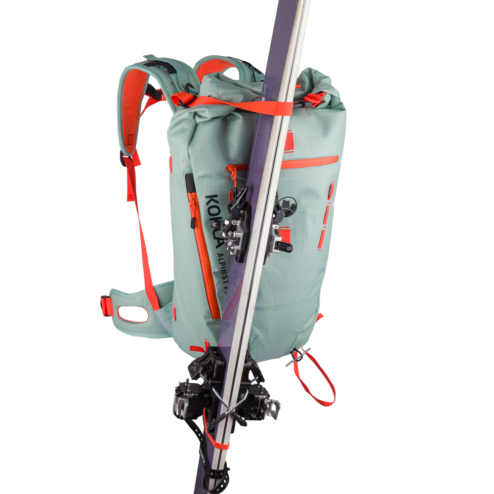 Auf der Vorderseite sorgt ein weiteres Reißverschlussfach sowie Daisy-Chains und Materialschlaufen für zusätzlichen Stauraum. Mit zwei Eispickelhalterungen und der Möglichkeit die Ski parallel oder diagonal tragen zu können wurde beim Alpinist PRO an alles gedacht. Abnehmbare Materialschlaufen und das elastische Helmnetz sind im Lieferumfang enthalten.