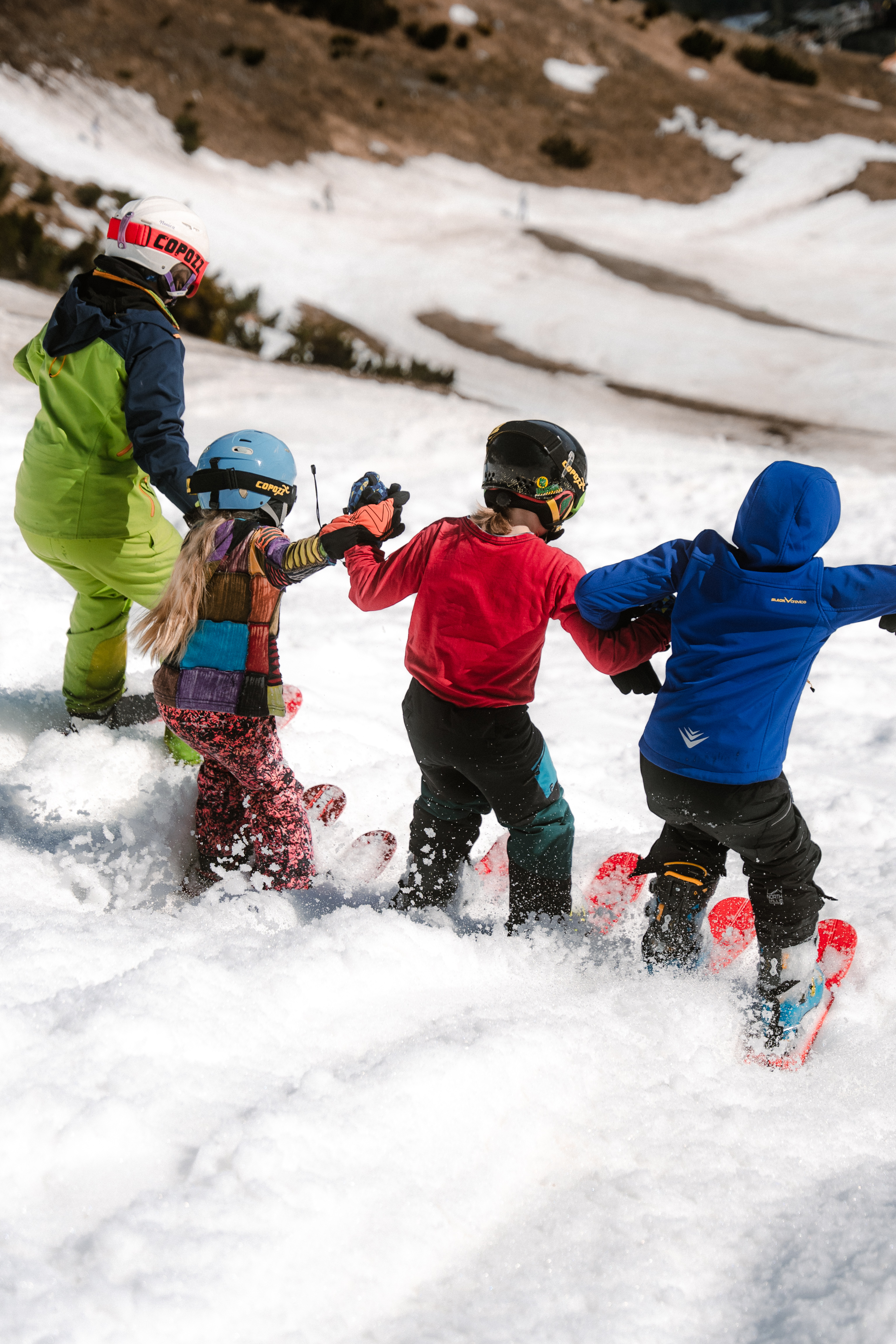 Um beim Figln wirklich eine „ordentlich Gaudi“ zu haben, empfehlen wir Euch wasserabweisende Kleidung. Je nach Witterung ist eine leichte Skibekleidung die optimale Wahl. Vorab eine Info: Die KOHLA Figl werden mit zwei Bindungsvarianten hergestellt, zum einen mit einer Plattenbindung, für die Ihr Skitouren- oder Skischuhe benötigt. Eine zweite Möglichkeit bietet Euch die Universalbindung, die mit den gängigsten Berg- bzw. Wanderschuhen kompatibel ist. Hier wird Euer Schuh durch festes Schnüren an der Bindung fixiert. Das KOHLA Team vor Ort passt die Bindung individuell auf Euer Schuhwerk an.