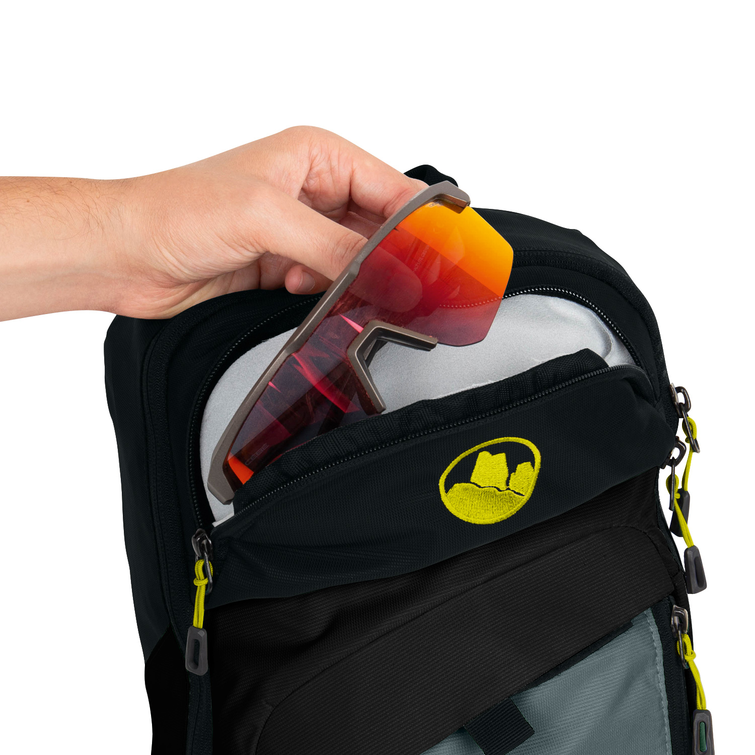 cover, goggle pocket and compression straps. The sportive look and slim