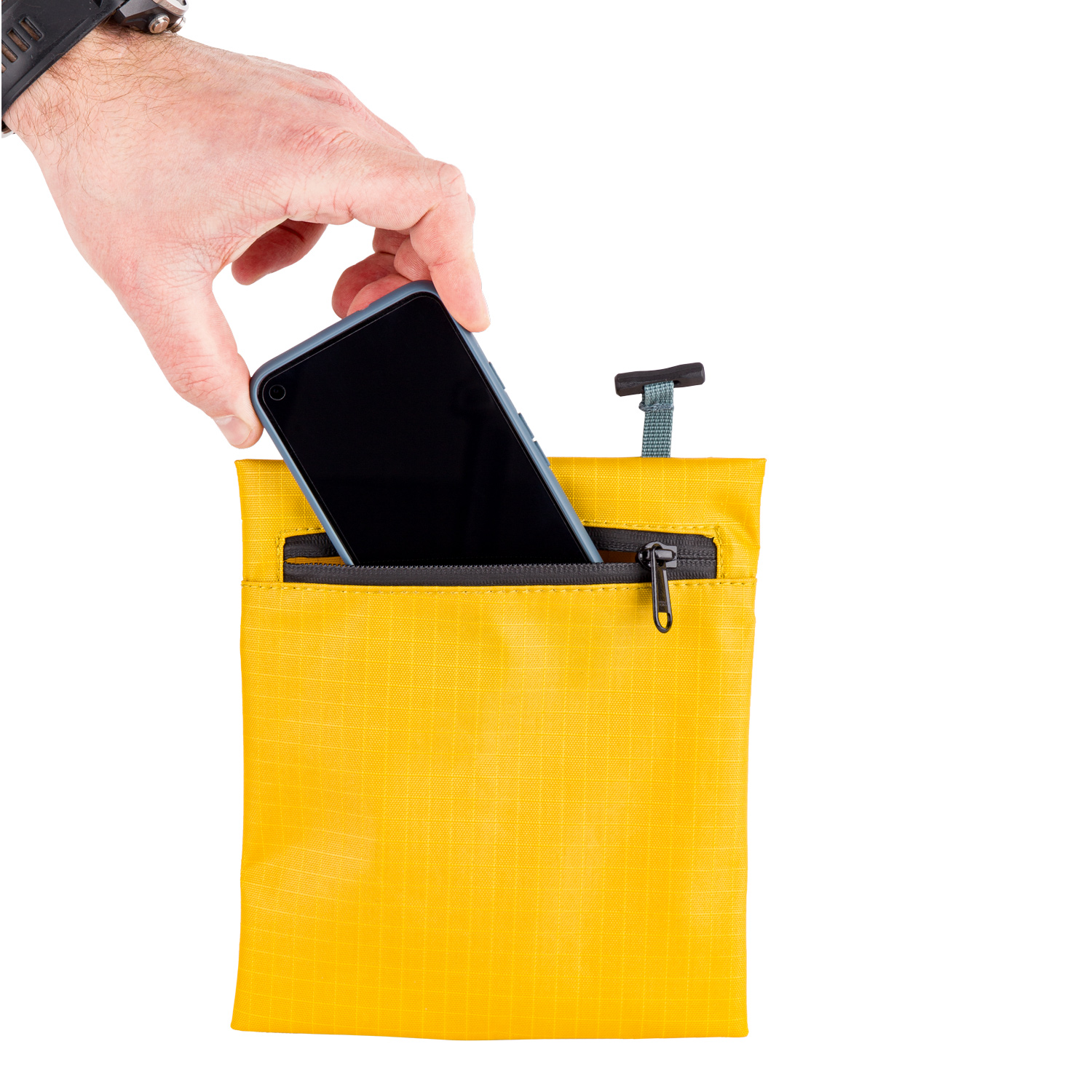 - Welded front pocket with weatherproof zip