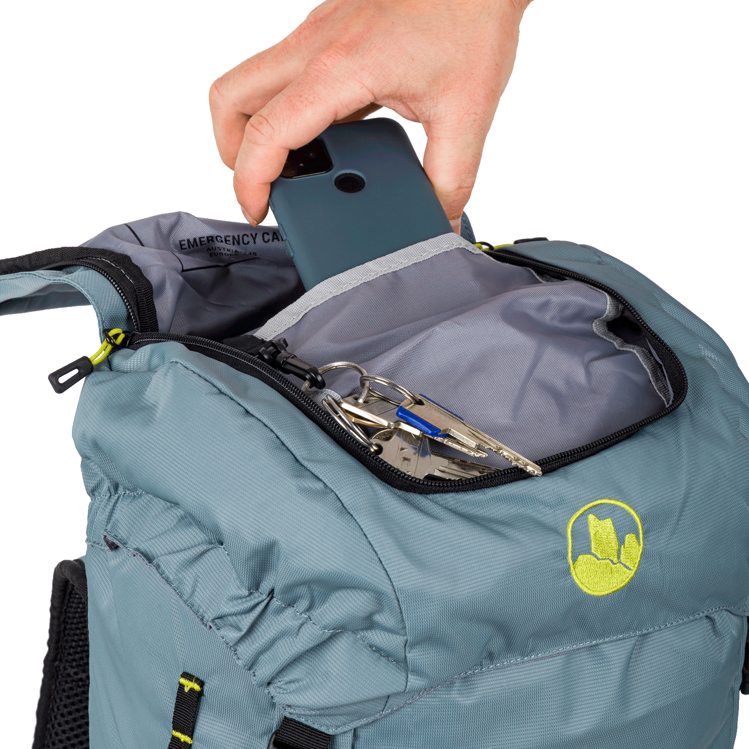 über einen breiten Schnellzugriff mit wasserabweisendem Reißverschluss